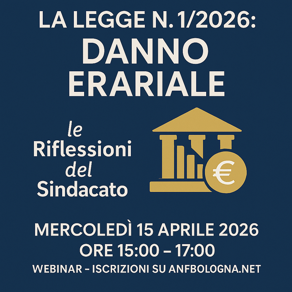 abbiamo organizzato il webinar, per il quale sono stati riconosciuti 2 crediti formativi in materi non obbligatoria, “LA LEGGE N. 1/2026: UN NUOVO PARADIGMA PER IL DANNO ERARIALE” che si terrà il 15 aprile 2026 dalle ore 15:00 alle 17:00.